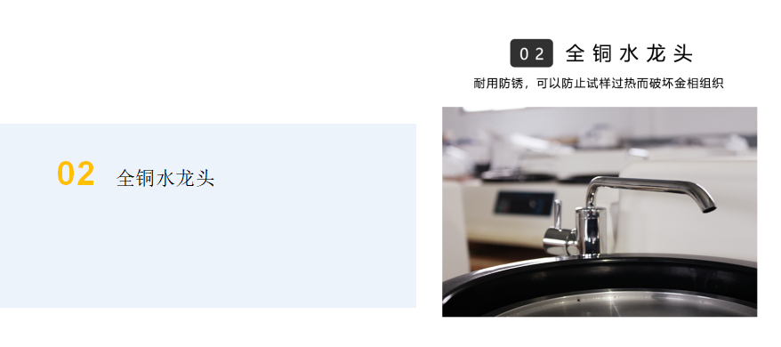 本機帶有冷卻裝置,可以在預磨時對試樣進行冷卻,以防止因試樣過熱而破壞金相組織。該機使用方便、安全可靠,是工廠、科研單位以及大專院校實驗室的理想制樣設備。