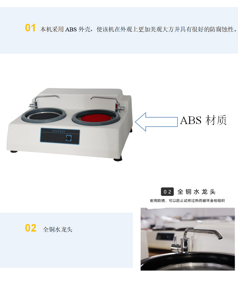 本機(jī)帶有冷卻裝置,可以在預(yù)磨時(shí)對(duì)試樣進(jìn)行冷卻,以防止因試樣過(guò)熱而破壞金相組織。