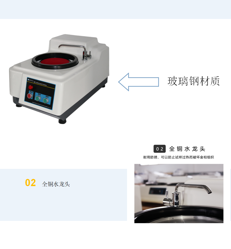 本機具有600轉/分鐘和300轉/分鐘兩種轉速,從而使本機具有更加廣泛的應用性,是用戶用來制作金相試樣必不可少的設備。 本機帶有冷卻裝置,可以在研磨拋光時對試樣進行冷卻,以防止因試樣過熱而破壞金相組織。該機使用方便、安全可靠,是工廠、科研單位以及大專院校實驗室的理想制樣設備。