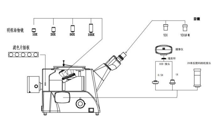 FCM5000W倒置金相顯微鏡配置圖: