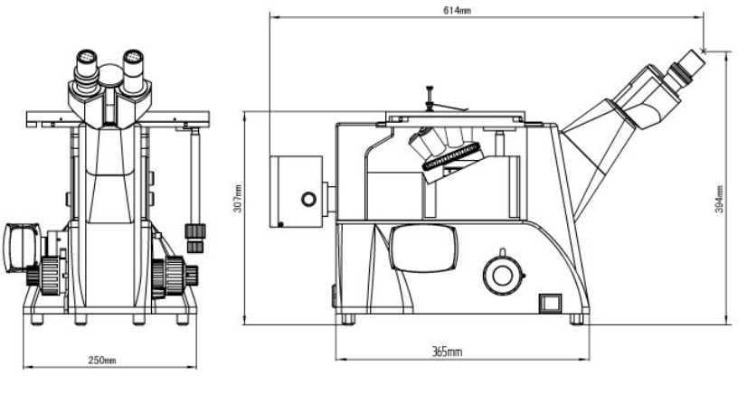 FCM5000W倒置金相顯微鏡尺寸圖: