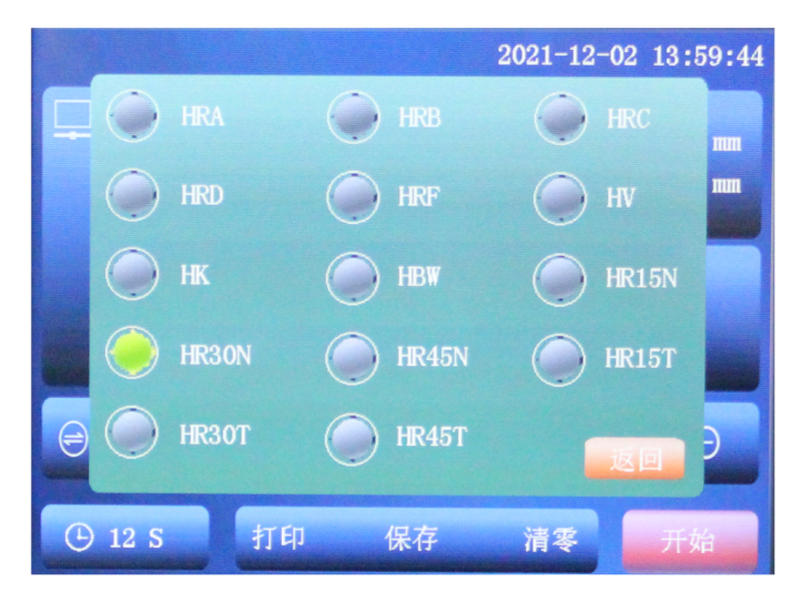 HRA、HRB、HRC、HRD、HRF、HV、HK、HBW、HR15N、HR30N、HR45N、HR15T、HR30T、HR45T |